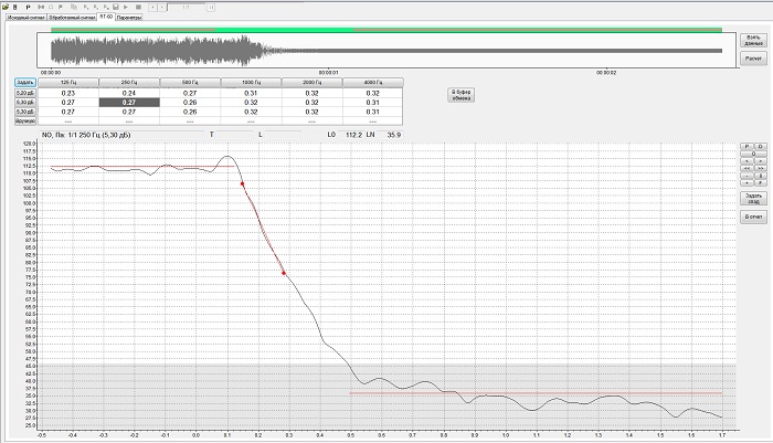 Полученное в октавной полосе время реверберации можно приписать к каждой из входящих в эту полосу 1/3-октав.